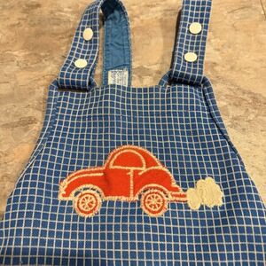 Vintage Carter's Overalls 18M Blue Check Car Appliqué 70's Made in USA 23–26 lbs