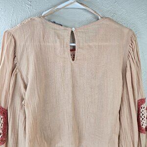 Zara Crochet Crop Top S Light Pink Linen Boho Cottage Hippie Long Sleeve Shirt (H733)