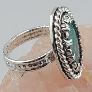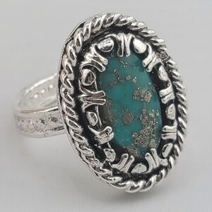 TURQUOISE OVAL RING HANDMADE IN STERLING SILVER METAL SIZE 8
