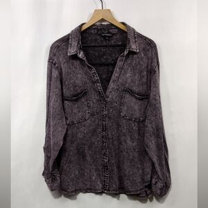 Rock & Republic Acid Wash Top Womens 3X Black Boho Retro 90s Y2K Grunge