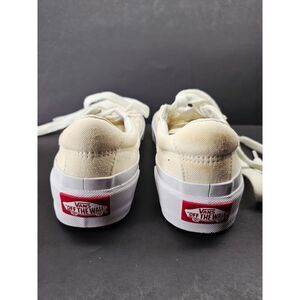 Vans have stain on front. Details also shown in pics. Size is Women 5 in white color