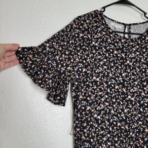 Maurices Floral Navy Blue Flutter Short Sleeve Ruffle Mini Dress Size Medium
