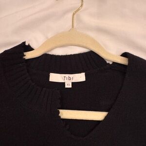 Tibi Midnight Knit Soft Lambswool Cutout Neckband Mini Dress
