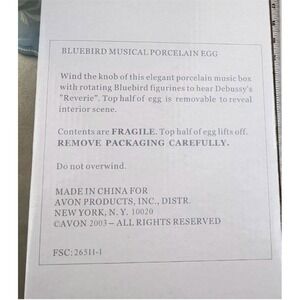 Keywords: egg ornament, porcelain egg, decorative egg, musical egg, Avon collectible, 2003 collectible, Easter decor, display piece, home accent, vintage egg, pedestal egg, ornamental #musicbox