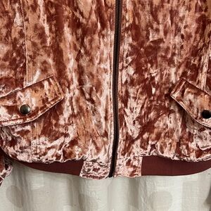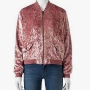 Luxurious rose velvet bomber. Adds sophistication to any look.