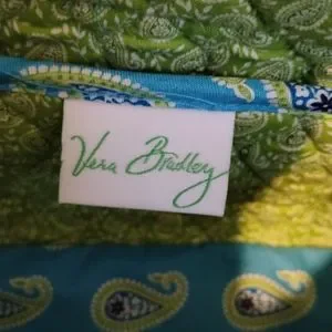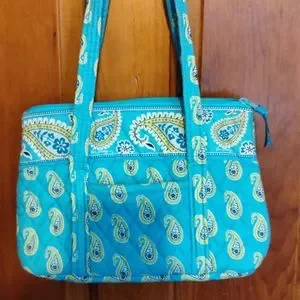 Stylish Vera Bradley bag with teal paisley design. Features quilted fabric and multiple pockets. Perfect for everyday use.