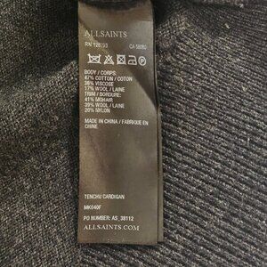 AllSaints Shawl Neck Cardigan Sweater Men Size XXL Gray Charcoal Cotton blend