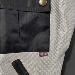 Stylish Belstaff vest with bold black and white contrast. Features multiple pockets and signature branding.