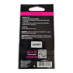 Fing'rs Heart 2 Art Nail Striping Tape. Each pack contains a purple,blue,and green roll. Can be left on as an accent or peeled off for a stencil effect. Perfect for creative nail designs. New in package.