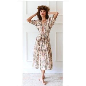 Short puff sleeves and a tiered skirt make the Zoe dress the effortless piece of the season. Elastic at waist, self belt and pockets.