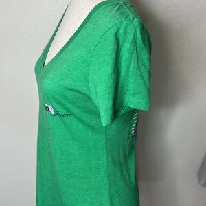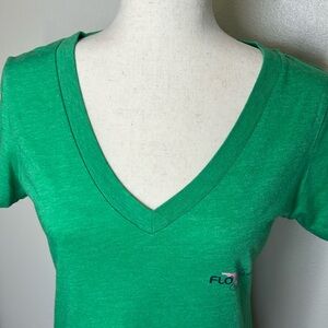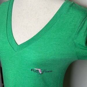 FLO GROWN Florida Native Dog Wisdom Kelly Green V Neck T Shirt Top Soft Stretchy