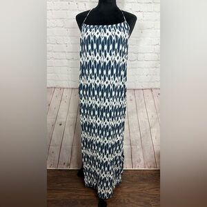 J. CREW blue white halter viscose lightweight beach vacay maxi dress, sz S, GUC