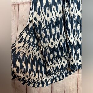chest flat 18", length measured under arm to bottom hem 42", side slits 12.5", back elastic, ties around neck, great used condition