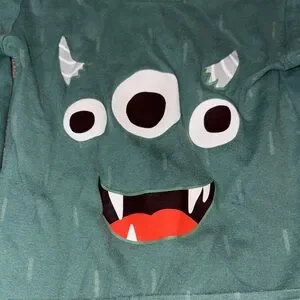Fun teal pajama set with a monster face. Features three eyes and sharp teeth.