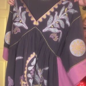 Sz. S | BLUE VELVET | Bohemian Embroidered Kaftan Tunic Top MSRP $90