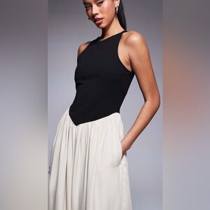 Effortlessly chic ASOS DESIGN Hybrid Wide Leg Jersey & Cupro Jumpsuit in a stunning black-and-cream colorblock design. This jumpsuit blends comfort with elevated style, featuring a sleek jersey bodice paired with fluid, wide-leg cupro trousers for a modern, minimalist silhouette.