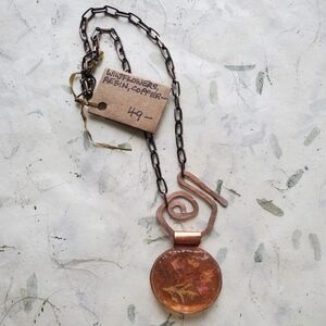 Artisan Wild Flowers In Resin On Copper Chain Necklace - Nwt