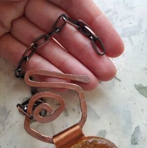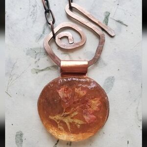 Artistic necklace with wildflower design in resin. Copper chain and pendant. Adds a natural touch.