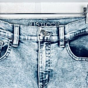 Justice Premium Denim Girls Jean Short Light Blue Acid Wash Shorts Size 16