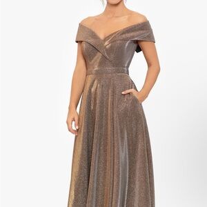 Details: Off The Shoulder, Cinched at Waist, Long Dress