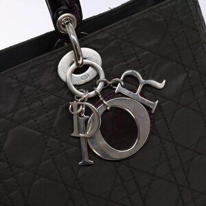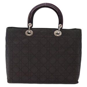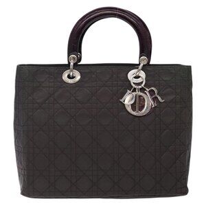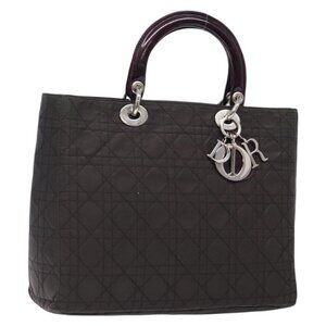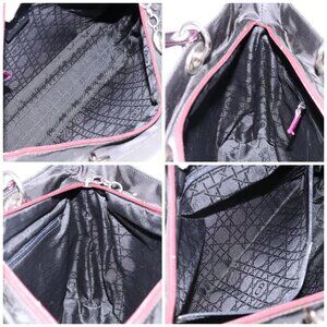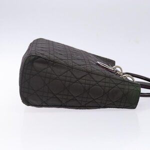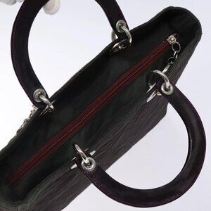 Christian Dior Canage Hand Bag Nylon Khaki Purple Silver Auth bs29344