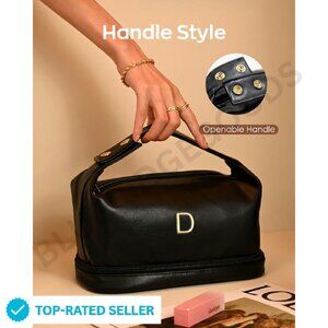 Large Waterproof PU Leather Makeup Bag Double Layer Travel Organizer Chic