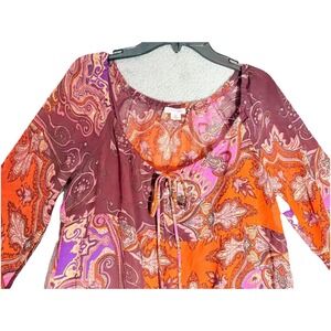 Exhilaration Boho Pink Orange Paisley Med Dress