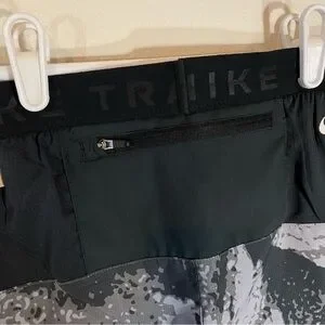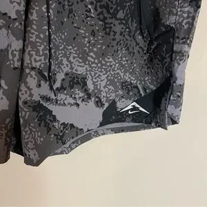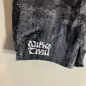 Nike Trail shorts with a dynamic black and gray pattern. Ideal for athletic pursuits.