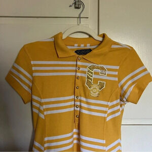 Coogi Australia Yellow White Striped Drop Waist Polo Dress Size Large