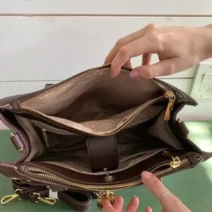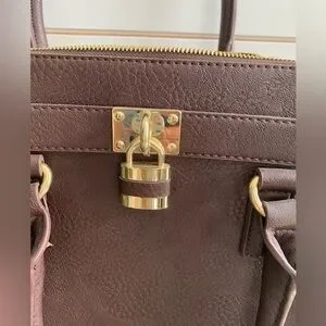 Sophisticated dark brown satchel. Gold hardware and lock detail. Comes with a detachable strap. NWT