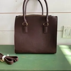 Charming Charlie Dark Brown Satchel with Gold Hardware