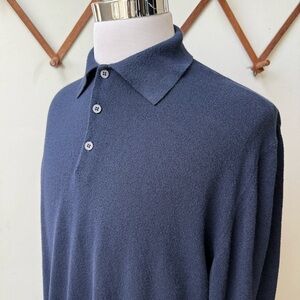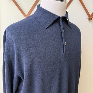 What’s cool? Navy blue, three button collared neck, textured terry cloth fabric, excellent quality, made in Italy