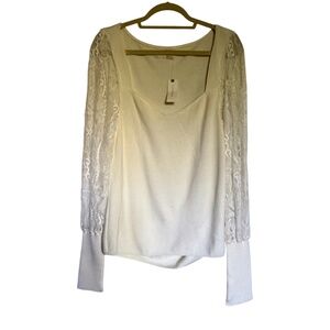 NWT Anthropologie Lace Sleeve Sweater Ivory Size XL