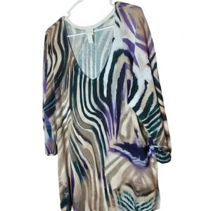 Chicos V-Neck Chico's Size 2. Purple/Tan/Green.Pre-Owned In Great Condition! 53% Cotton, 40% Rayon, 7% Nylon. See Pictures!