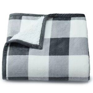 Cuddl Duds soft Gray Buffalo Plaid plush throw 50'' x 60"