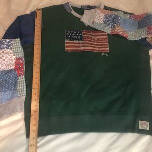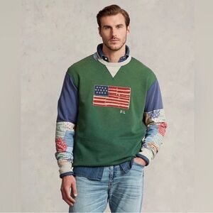 Polo Ralph Lauren Green and Blue Patchwork Crewneck Sweatshirt American flag