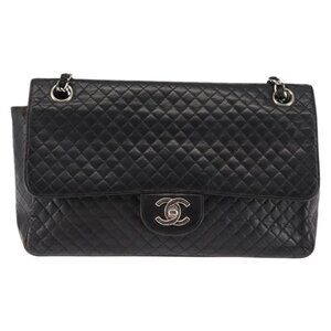CHANEL Matelasse 25 Chain Shoulder Bag Lamb Skin Black CC Auth 145575