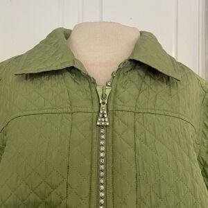 The Quacker Factory Quilted Jacket 1X Green/Pink 100% Silk Zip Embellished Coat