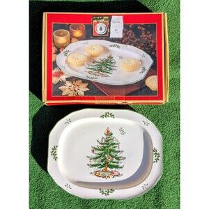 Retro Spode Sculpted 14" Christmas Tree&Mistletoe Serving Platter Plate Dish NIB