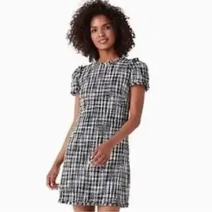 Tweed, kate spade, NY, classic, black and white, short dress, designer dress, cute, fun, short sleeve, pockets