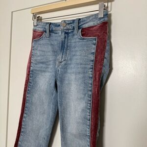 Paige Cindy Skinny Jeans Womens Sz 25 Indigo Pink Velvet Raw Hem Denim 90s Y2K