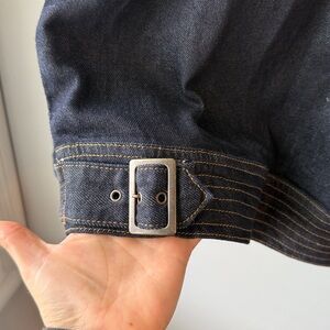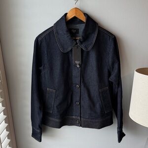 NWT RAILS Figueroa Denim Jacket. Size L. Brand new with tags! Features a point collar, contrast stitching, two side pockets, buckle tab waist, with boxy relaxed fit. 100% cotton. Dark wash color in midnight blues. Retails for $248.