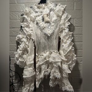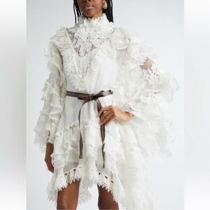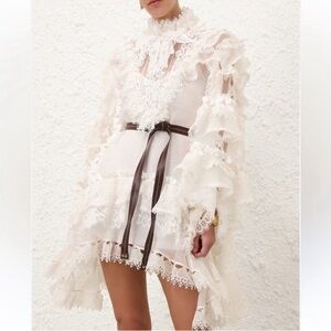 New Authentic Zimmermann Crush Heart Trim Long Sleeve Minidress Size Medium