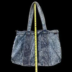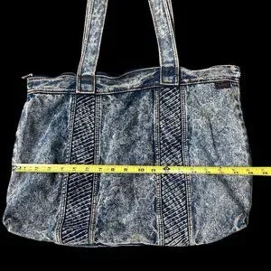 This tote screams, "I survived the 80s and all I got was this ridiculously cool bag!" Acid wash denim never goes out of style, just like mullets and cassette tapes. With space for all your stuff and a zipper to keep it safe, it's a blast from the past with practical flair.