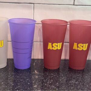 Include 4 Starbucks x ASU cups and one purple Starbucks cup