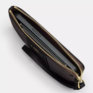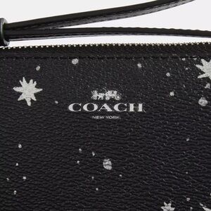 Coach Corner Zip Wristlet in Star Print Silver/Black Coated Canvas & Leather NWT