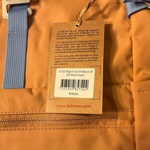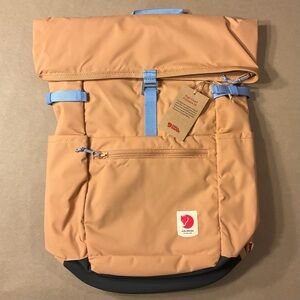 New Fjallraven High Coast Foldsack 24 liter backpack in Pebble Sand with Lt Blue straps.