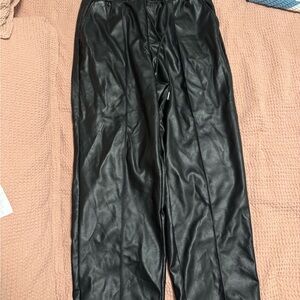 Chic faux leather joggers. Elastic waist with drawstring. Perfect for casual wear or to dress up.