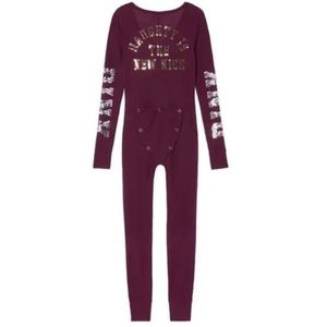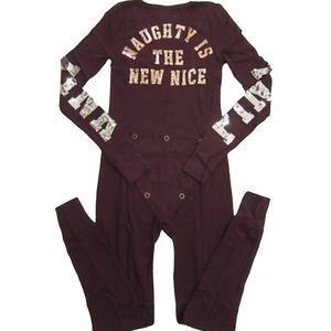 Victoria’s Secret PINK Naughty New Nice Burgundy Sequin Thermal Onesie L
