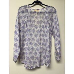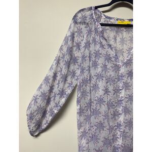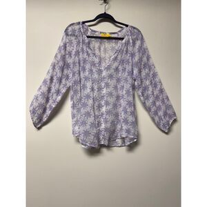 ROBERTA ROLLER RABBIT Sheer Star Print V-Neck Peasant Blouse, Sz L
